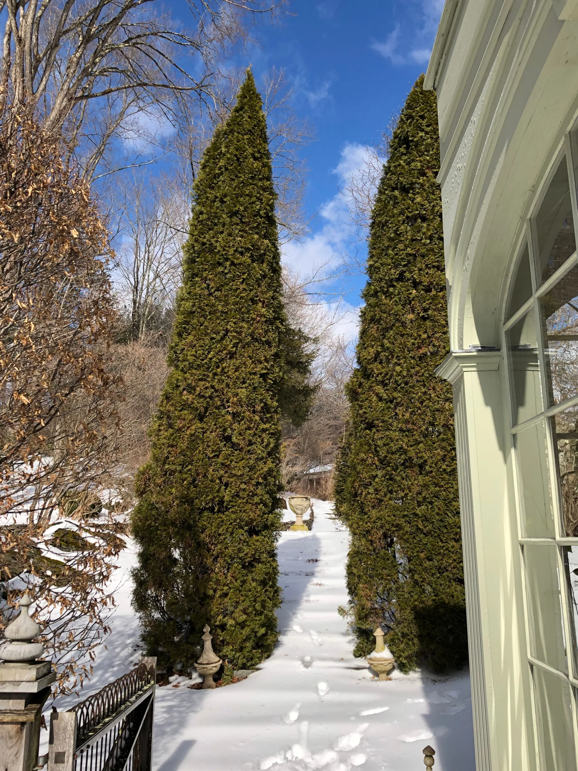 This cultivar is derived from Thuja occidentalis, which grows naturally in limestone-based, moist forests and wetlands throughout the Great Lakes and northeastern U.S. ‘DeGroot’s Spire’ performs well in evenly moist, well-drained soils and can tolerate pruning but maintains its slender form naturally with age.
